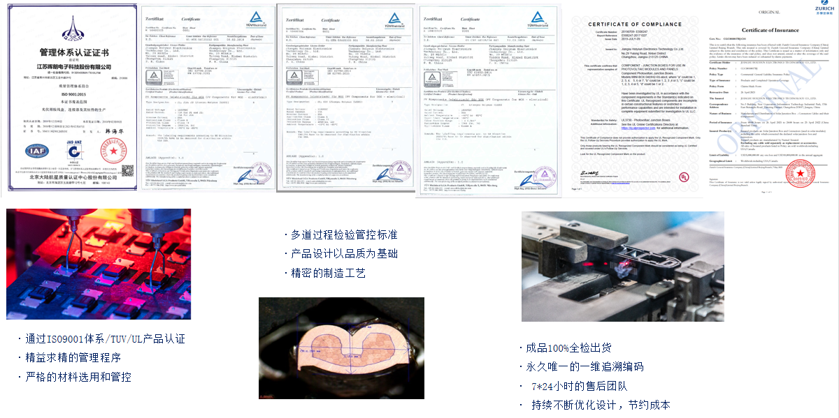 公司以质量为本、科技创新、客户满意、合作共赢的理念致力于包括光伏接线盒、光伏和储能连接器、线缆、线束等各类光伏连接产品的研发、制造、营销和服务。公司产品获得市场广泛好评,客户群体覆盖多家海内外光伏龙头企业。
